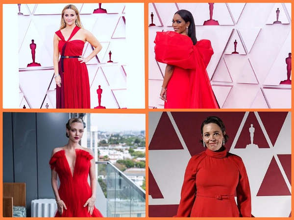 The red dresses dominated the pink carpet of the Oscars 2021 and made us realise the power of fiery red hue. Olivia Colman, Amanda Seyfried, Angela Bassett, and Reese Witherspoon flaunted different styles of red dresses at the 93rd Academy Awards but we have our favourite pick.