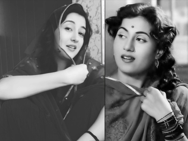 Priyanka Kandwal even imitated Madhubala and Ashok Kumar's famous song from the movie Howrah Bridge and one of the Twitter users, Sunanda also wrote that Priyanka even wore a similar sari for the song. Her sari with glittering border and the colour-blocked blouse is quite similar to Madhubala's sari in the song, Haal Kaisa Hai Janaab Ka. Even the partly-tied tresses in her TikTok video is same.