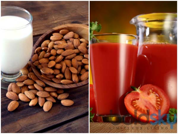 Learn more about the health benefits of the mixture of almond milk and tomato juice, here.