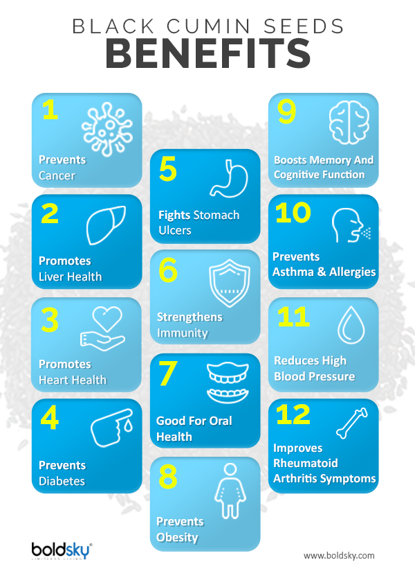 Black cumin seeds have been used as a traditional remedy for many diseases. The intake of black cumin seeds has shown positive effects in those whose blood pressure is mildly elevated, according to a study[7] .