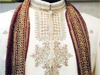 The Sherwani: Sherwani is a coat like garment, worn by men, fitted close to the body, of knee-length or longer and opening in front with button-fastenings. Below that the men wear a garment for the lower part of the body, baggy and wide at the top tied with a string at the waist , and tight around the legs and ankles. It is a very elegant dress for the men and mostly worn during ceremonies. Sherwani is the formal attire, usually wore by North Indian Royalties. Began during the Mogul times, embroidery work traditionally done by craftsman from Banaras and Delhi. Now, the embroidery work is made through machine. This dress in popularly known as jodhpuri in Rajistan. Long back Indian men would wear a sherwani for all formal occasions including going for work or to their offices ,but as for today it is only made for special occasions like weddings or festivals.