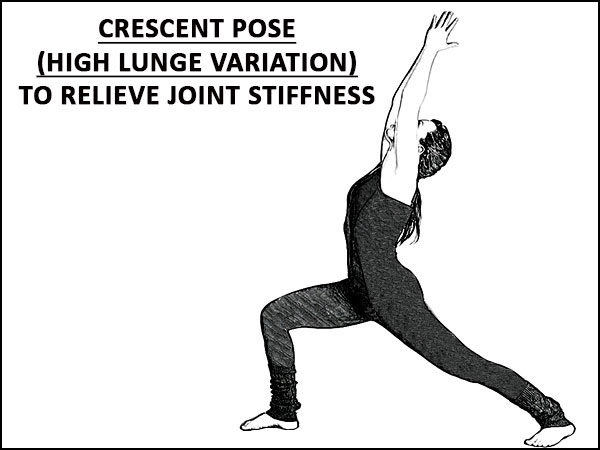 The Crescent Pose also known as the High Lunge Variation is one of the yoga asanas which is known to relieve joint stiffness. Since this asana requires a lot of balance, it might be difficult initially. However, with continuous practise it becomes easier.