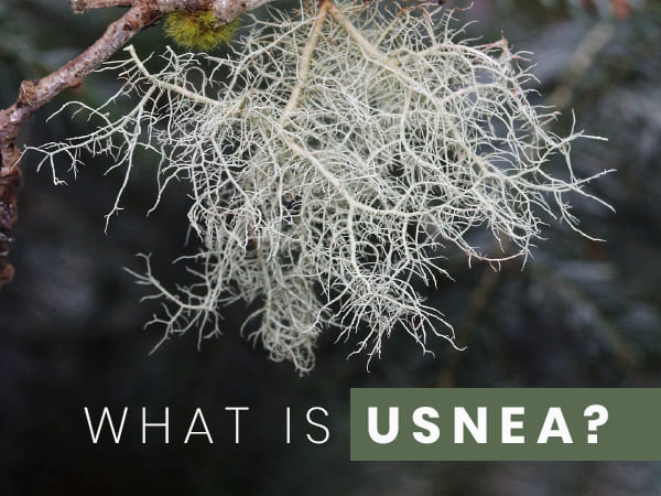 Usnea is a type of lichen, a composite organism consisting of an alga and a fungus that grow together. The fungus gives structure, mass and protection from the elements, while the alga provides nutrients to help both of them survive.