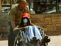 One among the eight security guards pushed Jackson's wheelchair around the shop. Onlookers were surprised to see their celebrity singer in such a helpless condition.