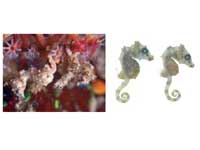 1)Tiny pea-sized seahorse (Hippocampus satomiae), with a standard length of 0.54 inches (13.8 millimeters) and an approximate height of 0.45 inches (11.5 millimeters).