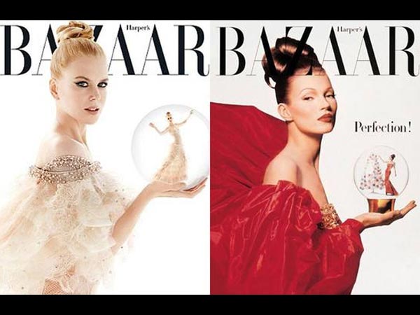 What makes this cover page of Harper's Bazaar 2013 so special is that the Australian beauty, Nicole Kidman who looks stunningly beautiful. No one would say that she is coming of age, since she looks so youthful and energetic. On the cover page of the Harper's Bazaar for the month of December 2013, Kidman shoot has a little more creativity when compared to Kate Moss in 1992. Though Kate Moss wears a red colour gown in her shoot and Nicole a cream, we still feel that Nicole bears a better look!