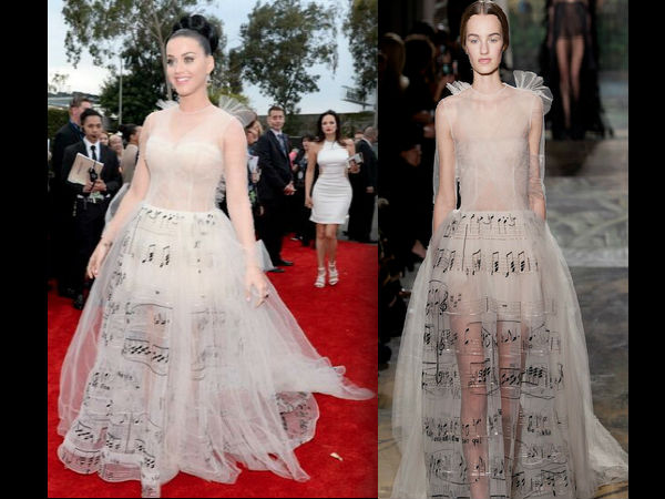 Katy Perry who is seen wearing a Maison Valentino Couture looked musical and sensational. The white fairy gown as one would describe it made Katy Perry look like an angel. The paper Maison Valentino couture which Katy Perry wore looked so delicate and chic.