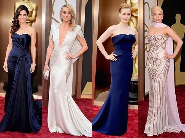 However, we saw many praise worthy white gowns. Kate Hudson's Versace Atelier deserves a special mention. This gown with a deep neckline was one of the best outfits seen on the red carpet of Oscars 2014. Blue was the colour for nominees at the Academy Awards this year. Sandra Bullock, Amy Adams and Lupita Nyong'O wore blue and all three were nominated in different categories.
