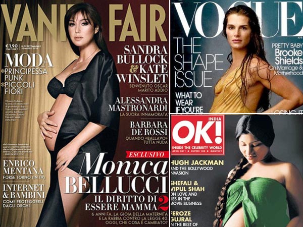 Pregnant celebrities on magazine covers have become a fashion now. Many pregnant celebrities deliberately bare their baby bumps now. However, in the past, most celebrities did not wish to be photographed when they were pregnant. They thought that it would spoil their glamorous image to photographed when they were heavy and had piled on weight.
