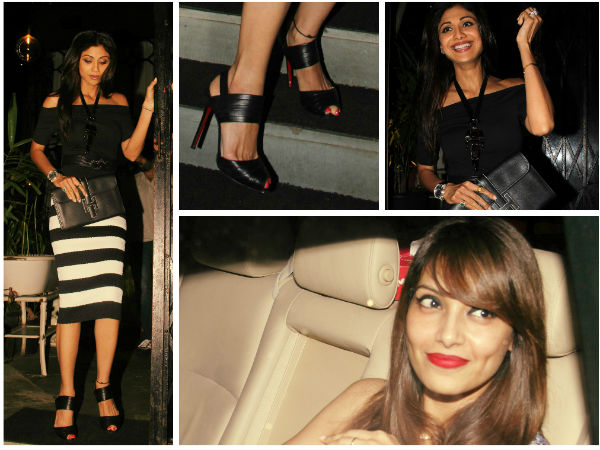 Bipasha Basu and her boyfriend accompanied Shilpa Shetty and her husband Raj Kundra on the double date in Mumbai. We heard that Bipasha Basu too looked sensational in a long maxi gown with a plunging neckline! However, if we put both the ladies together, no one can beat Shilpa Shetty's style and attitude in carrying off any design! Don't you agree?