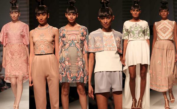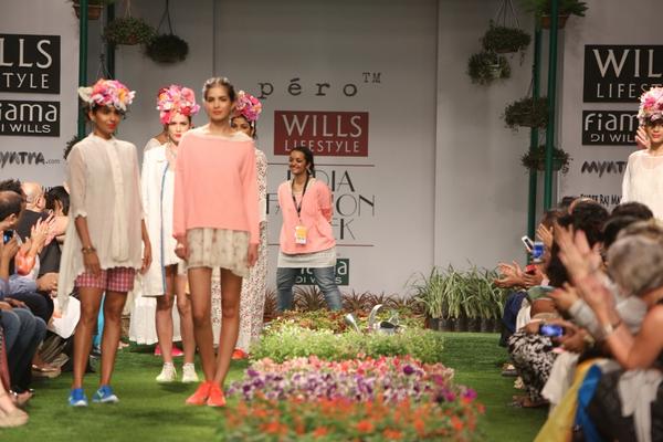 15:25:04 | 1st show @ilovepero by #AneethArora presents 'Love on Foliage',a collection that captures the colours of spring through bright neons #WIFW15 |