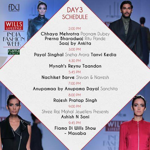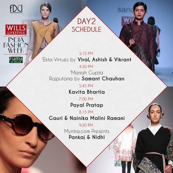 13:56:38 | Day2 Lineups #ManishGupta #RajputanabySamantChauhan @fgaccess @Payalpratap1 @gauriandnainika #MaliniRamani @PankajandNidhi @myntra #WIFW15 |