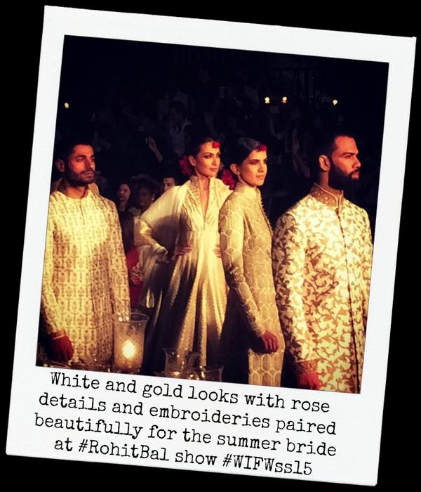 23:57:14 | White & gold with rose details & embroideries paired beautifully for the summer bride @im_RohitBal show #WIFW15 #WIFW http://t.co/MptoX8O2Ju ![]() |