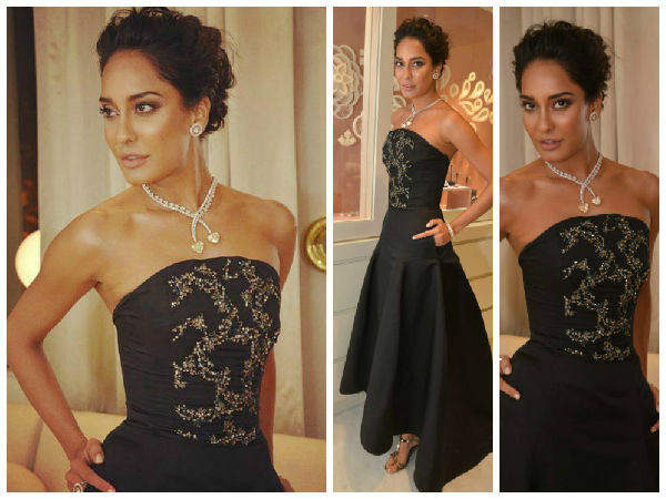 Lisa Haydon was spotted at the Nirav Modi store launch in a black Dior dress. The red carpet dress was a perfection. The Dior ensemble was an off shoulder and rounded off with florals at the bodice in the form of gleaming beads. The strapless dress was plain and was of a raw silk material. Lisa Haydon finished off this number with a snake like diamond necklace and earrings which is from the designer, Nirav Modi. The collection draws a sense of elegance and style and we are smitten to see Lisa carry it off so well.