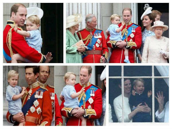 Prince George was in Prince William's arms to watch the RAF flypast. He looked in excitement at the parade and caught a lot of attention from the royal fans.