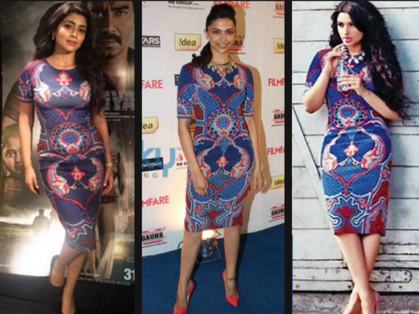 Well it is not the first time we saw a celebrity wear this mosaic printed body con shift dress. Earlier Deepika Padukone wore this creation from designer duo's Spring Summer 2014 collection.