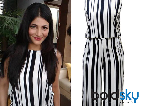 Now the actress went chic in a monochrome look. Shruti Hassan attended a press conference for Puli looking stylish in a black and white monochrome culottes.