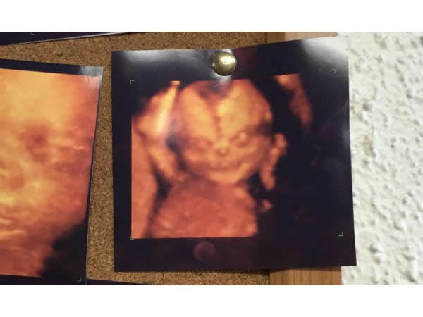 When the parents went in to get the wife's weekly checkup done, they found a creepy red, leering demon-looking face. This was the image that was got when the couple went in for a "4D" ultrasound scan.