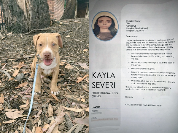 When you want something SO bad, no force in the world will be able to stop you and your creativity levels go so high, you end up writing a CV to get a puppy for Christmas. At least that's what 18-year-old Kayla Severi from Australia did.