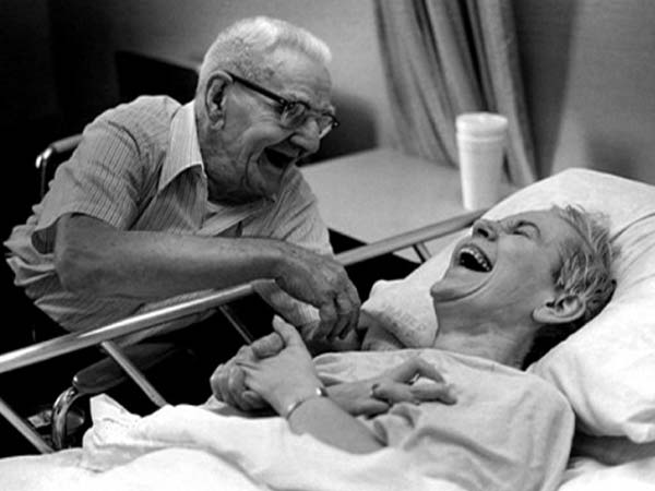 Laughter can heal several diseases and a true smile can change anyone's heart. This picture of an old couple at the hospital bed trying to fight diseases and enjoying their sweet moments is simply amazing. Isn't it?