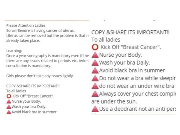 WhatsApp Warning Of Black Bra Linked To Sonali Bendre's Cancer Is Fake News!