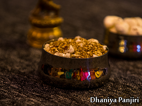 Dhaniya panjiri is a traditional naivedyam recipe that is offered to Lord Krishna, especially on Janmashtami. The coriander panjiri recipe is prepared with powdered coriander seeds and roasted makhane with sugar and dry fruits added to it.