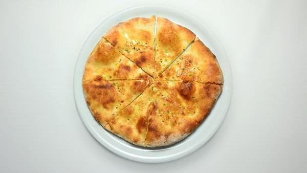 Focaccia is a flat Italian bread that is baked in the oven and resembles pizza in both appearance and texture (crusty outside and chewy inside), which is why it is termed pizza bianca in some regions. Focaccia comes in round, square or rectangle shapes and can be eaten as a sandwich bread or side dish for pasta.