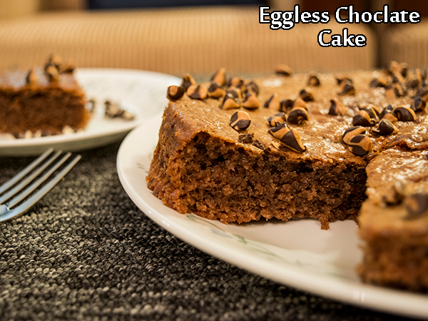 Eggless chocolate cake does not require any expertise and all that it requires is an oven to be cooked. A pressure cooker can be used as well; but in our recipe, we use an oven which takes around 50 minutes to fluff up this cake.