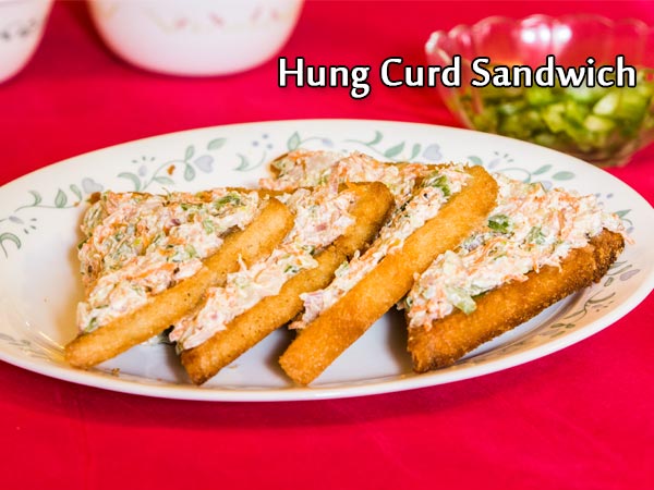 Hung curd sandwich recipe, or hung curd vegetable sandwich, is a delectable and quick to make breakfast option. The spread is prepared by adding vegetables to the hung curd, making it a healthy option to mayonnaise. The hung curd spread can be refrigerated and preserved for about 2-3 days.