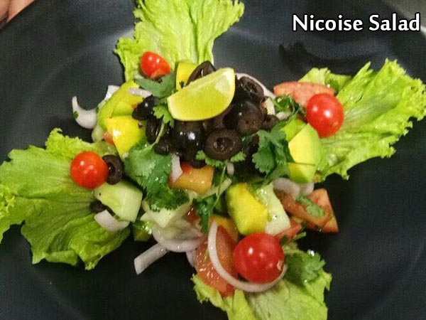 Nicoise salad is a salad that originated in the French city of Nice. It is traditionally made of tomatoes, hard-boiled eggs, Niçoise olives, anchovies, and dressed with olive oil. This salad is absolutely light on the tummy and is full of flavours of olives, nicoise.