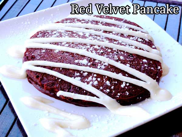 This recipe is a perfect fit for a celebration. It is a go-to pancake recipe. Simple ingredients like cocoa powder, sugar, buttermilk and food colouring would be required to make this.